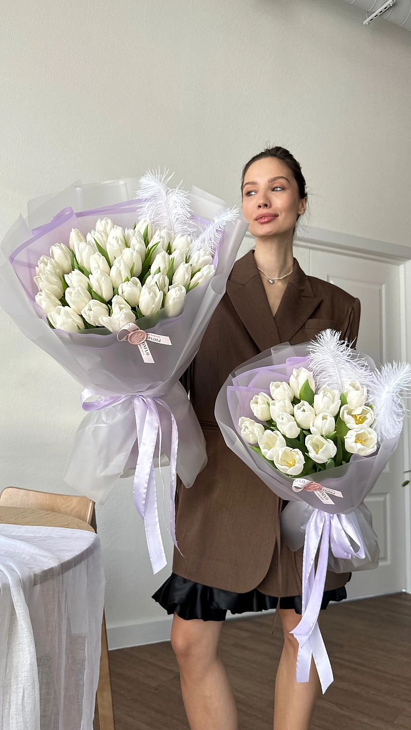 Букеты с нежными тюльпанами к празднику от PIONFLO