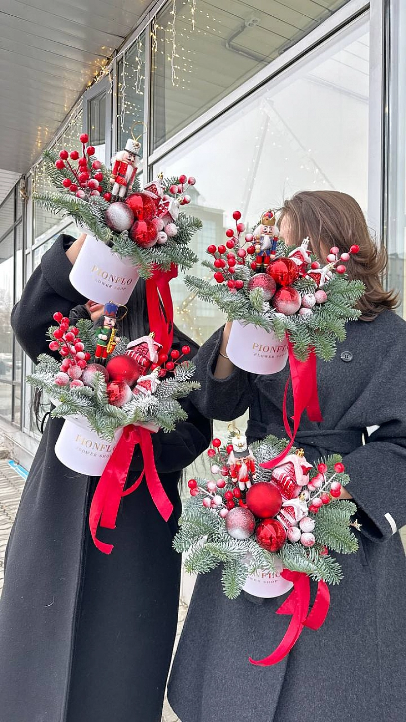 Погрузитесь в атмосферу новогоднего чуда с праздничными композициями и букетами от PIONFLO! Каждая работа создана вручную из свежей хвои, натуральных украшений и стильных акцентов.