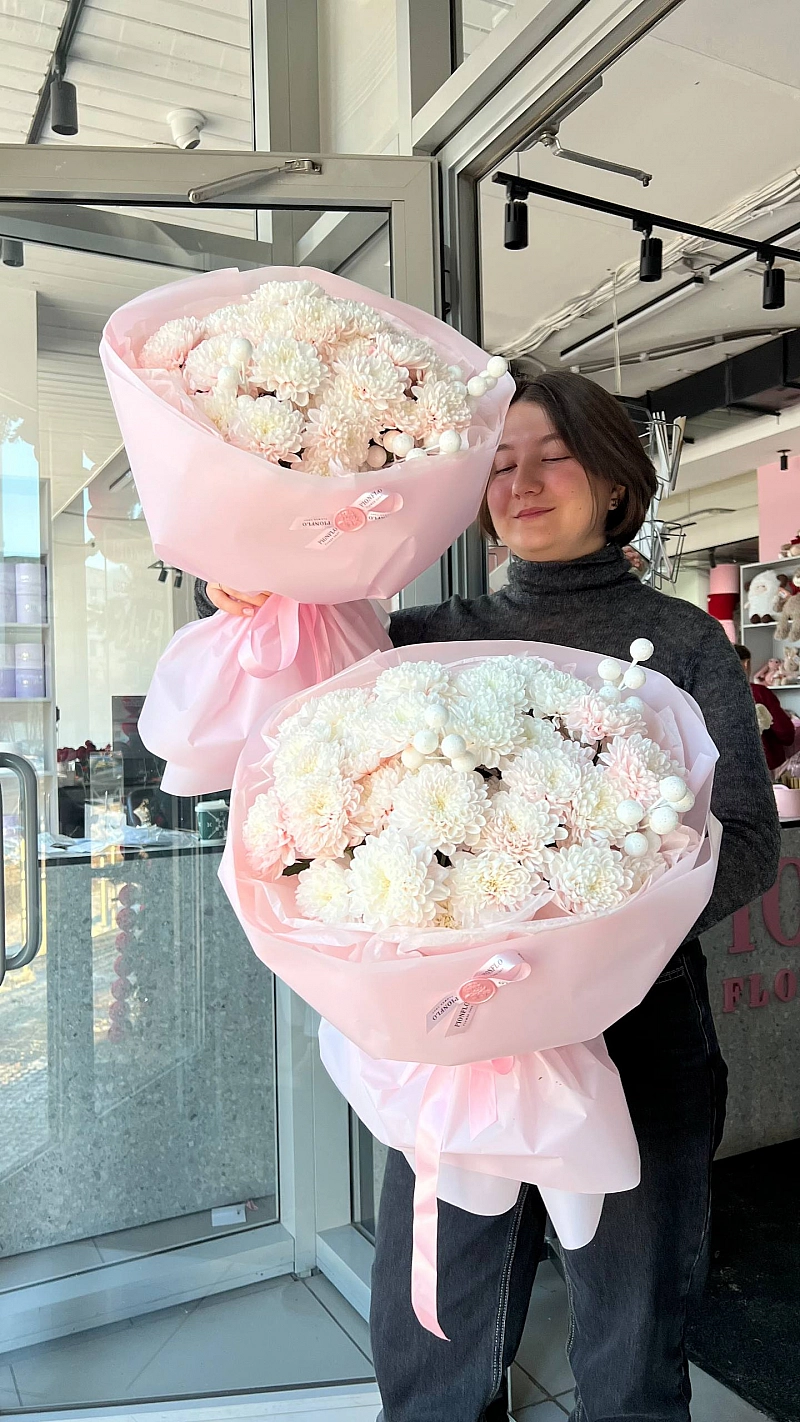 Новогодний моно-букет с хризантемами