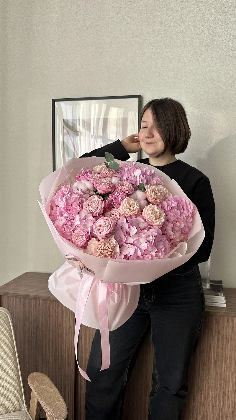 В природе не бывает двух одинаковых цветов, поэтому каждая композиция индивидуальна. Мы соберем букет, похожий на тот, который представлен на фото.